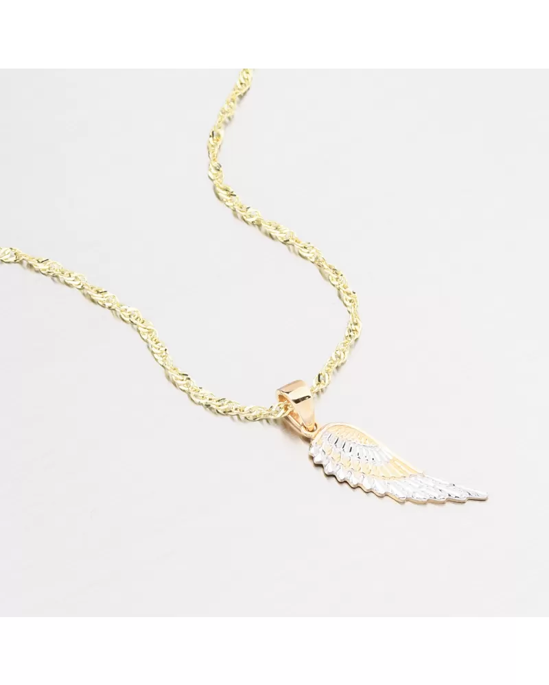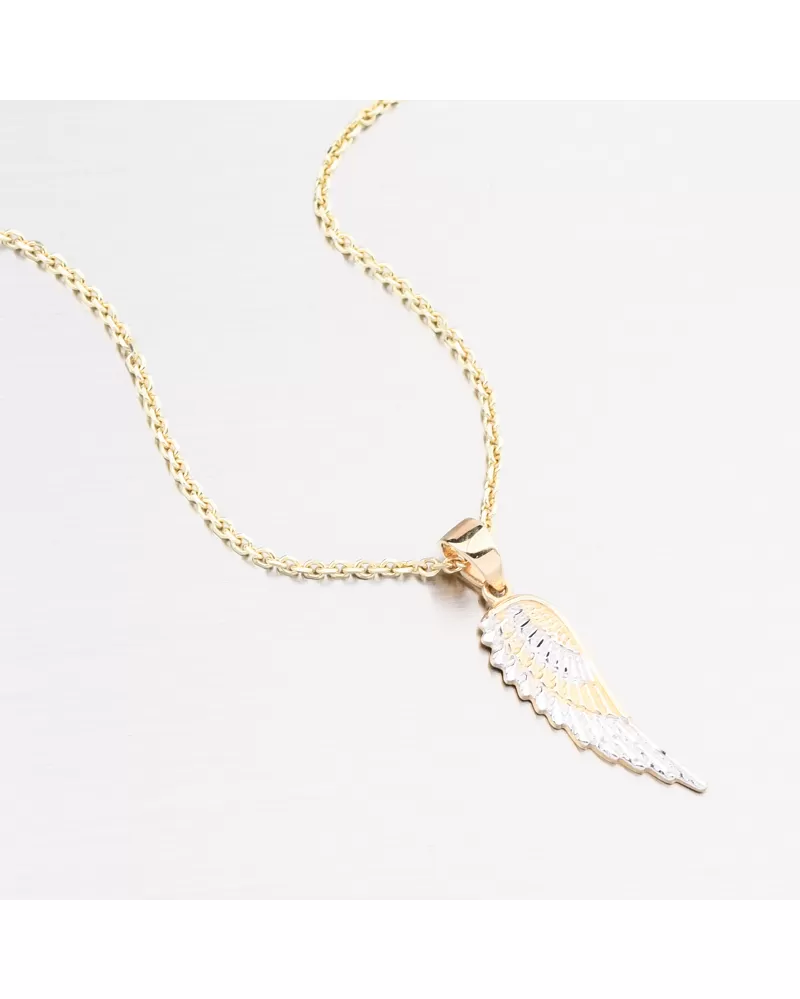 Elegantní přívěsek ve tvaru andělského křídla je symbolem ochrany, naděje a čistoty. Vyrobený z kvalitního zlata, zdobený precizním zpracováním a jemnými detaily v bílé barvě zlata, působí jemně a zároveň výrazně. Některá místa jsou ozdobené facetami - gravírováním. Facety zhotoveny diamantovým nástrojem, který dodává vzniklým facetám maximální lesk, díky kterému dokonale odráží světlo a mají krásnou brilanci ze všech úhlů pohledu. Díky svému modernímu designu se stane nejen krásným šperkem, ale také osobním talismanem, který vás bude provázet každý den. Hodí se jak k samotnému nošení, tak i v kombinaci s dalšími přívěsky. Tento šperk s hlubokým významem potěší srdce i duši. Ideální jako dárek pro vaše blízké, tak i pro vás.