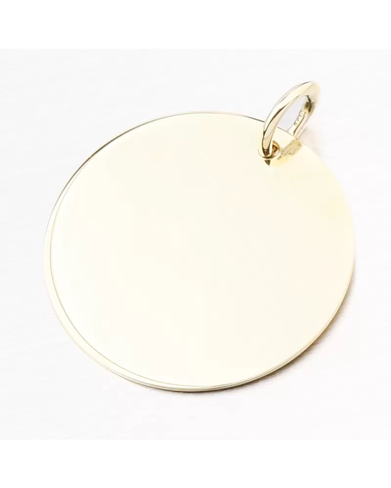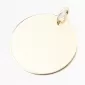 Jednoduchý zlatý přívěsek kulatého tvaru ve vysokém lesku. Na přívěsek je možné nechat z přední nebo zadní strany udělat rytinu. Např. jméno, datum, věnování. Přívěsek s rytinou se hodí jako perfektní dárek pro Vaše milované. Detaily prosím uveďte do kolonky "rytina".