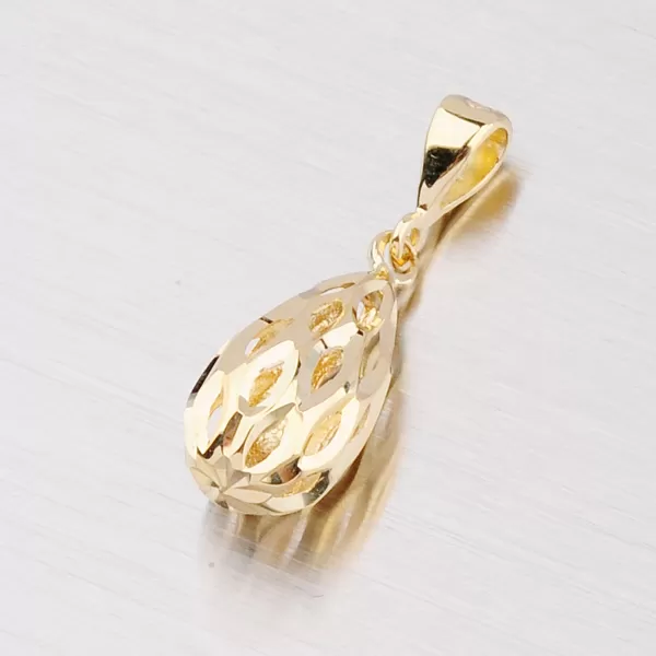 Nádherný zlatý přívěsek ve tvaru kapičky bude slušet snad každé ženě. Vyroben je ze žlutého čtrnáctikarátového zlata 585/1000 v lesklé povrchové úpravě. K přívěsku je možno použít řetízek o max. průměru 3 mm.
