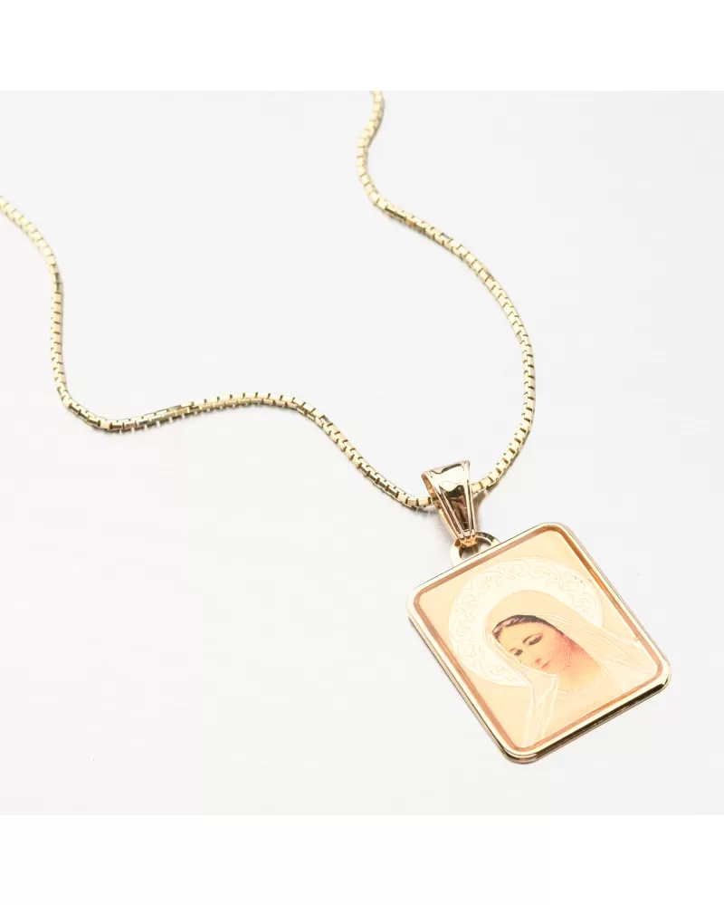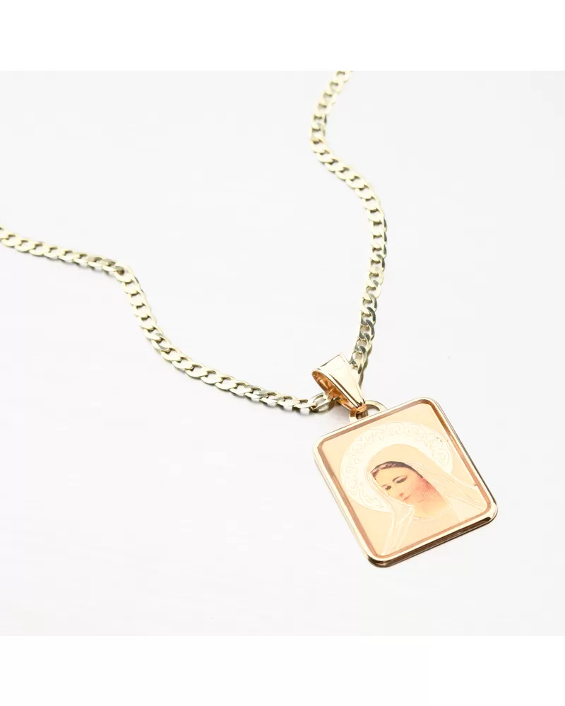 Přívěsek s oblíbeným náboženským motivem na výrazné destičce s vyobrazenou Madonou. Madonina zář je zdobena nádherným gravírováním, který přívěsek decentně zvýrazní.