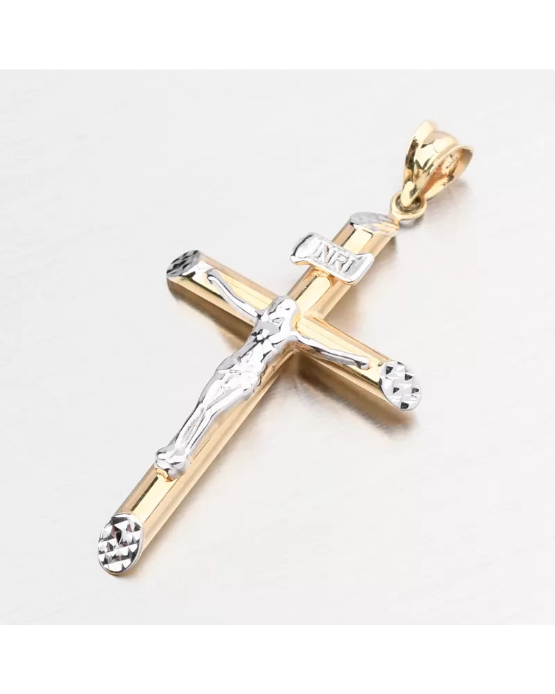 Velký kříž vás zaujme propracovaným Ježíšem v bílé barvě zlata. Zadní strana přívěsku je hladká a díky tomu přívěsek dokonale přilne k dekoltu. Přívěsek je dutý, proto je jeho váha tak příjemně nízká a současně také cena. Přívěsek potěší ženy i muže.