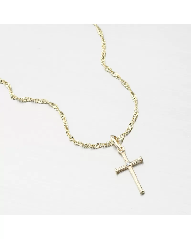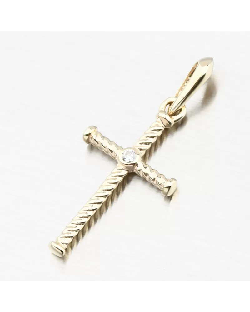 Decentní ale velmi propracovaný šperk ve formě zlatého křížku dokonale ozdobí dekolt žen i mužů. Křížek je vroubkovaného povrchu a je zdoben zirkonem v briliantovém brusu, který je vsazen uprostřed šperku. Briliantový brus zajišťuje maximální brilanci vybroušených facet, dokonale odráží světlo a neuvěřitelně září z každého úhlu pohledu.