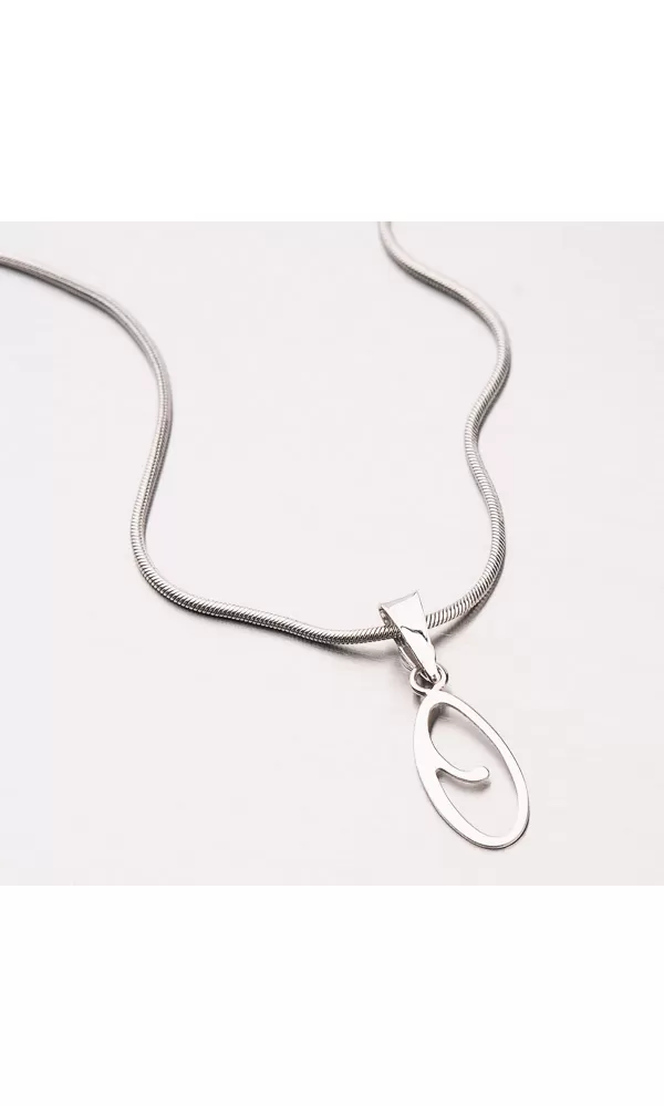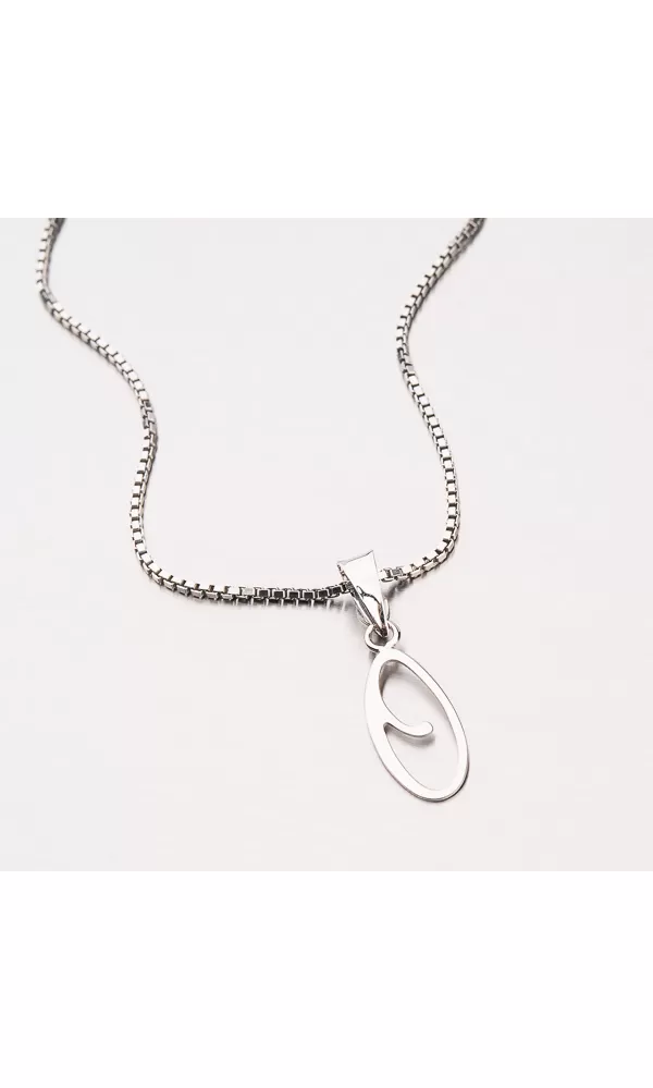 Přívěsek ve tvaru písmenka O je vyroben z bílého čtrnáctikarátového zlata 585/1000. Přívěsek je vyroben v lesklé povrchové úpravě a kombinaci psacího… Celý popis
