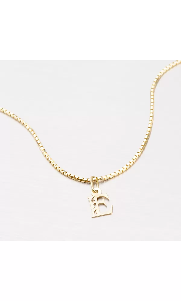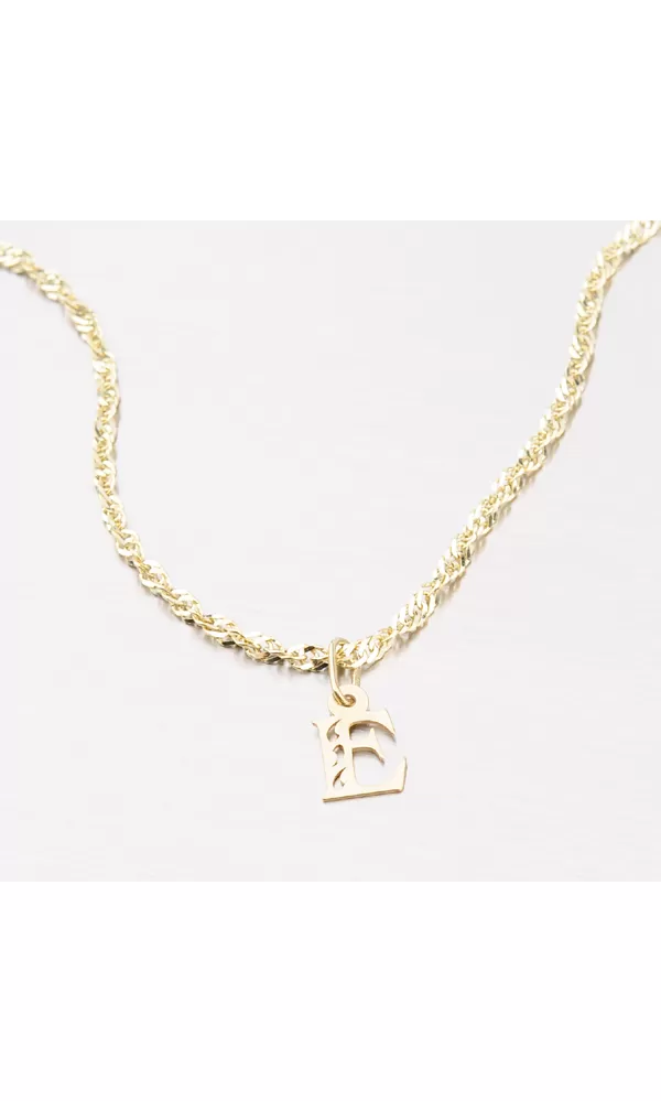 Přívěsek ve tvaru písmenka E je vyroben ze žlutého čtrnáctikarátového zlata 585/1000. Přívěsek je vyroben v lesklé povrchové úpravě s jemnými proseky ve tvaru kapky. Na doplňujících fotografiích je přívěsek vidět na řetízku: 364-0100, 44-1028 a 44-1137 nebo dále můžete vybírat v celé kategorii zlatých řetízků.