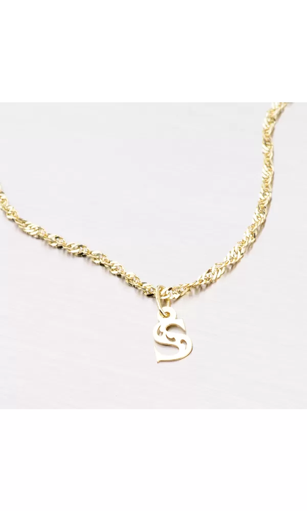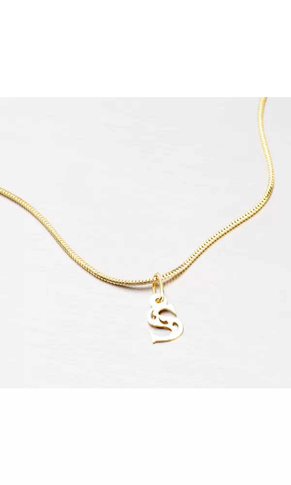 Přívěsek ve tvaru písmenka S je vyroben ze žlutého čtrnáctikarátového zlata 585/1000. Přívěsek je vyroben v lesklé povrchové úpravě s jemnými proseky… Celý popis