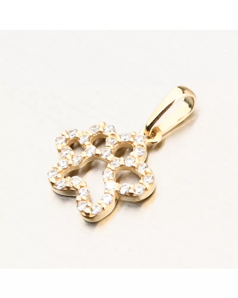 Okouzlující přívěsek ve tvaru roztomilé ťapky je vyroben ze žlutého zlata a ozdoben třpytivými zirkony, které dodávají šperku jemný lesk a eleganci. Svým hravým, ale zároveň nadčasovým designem je ideálním doplňkem pro každého milovníka zvířat.