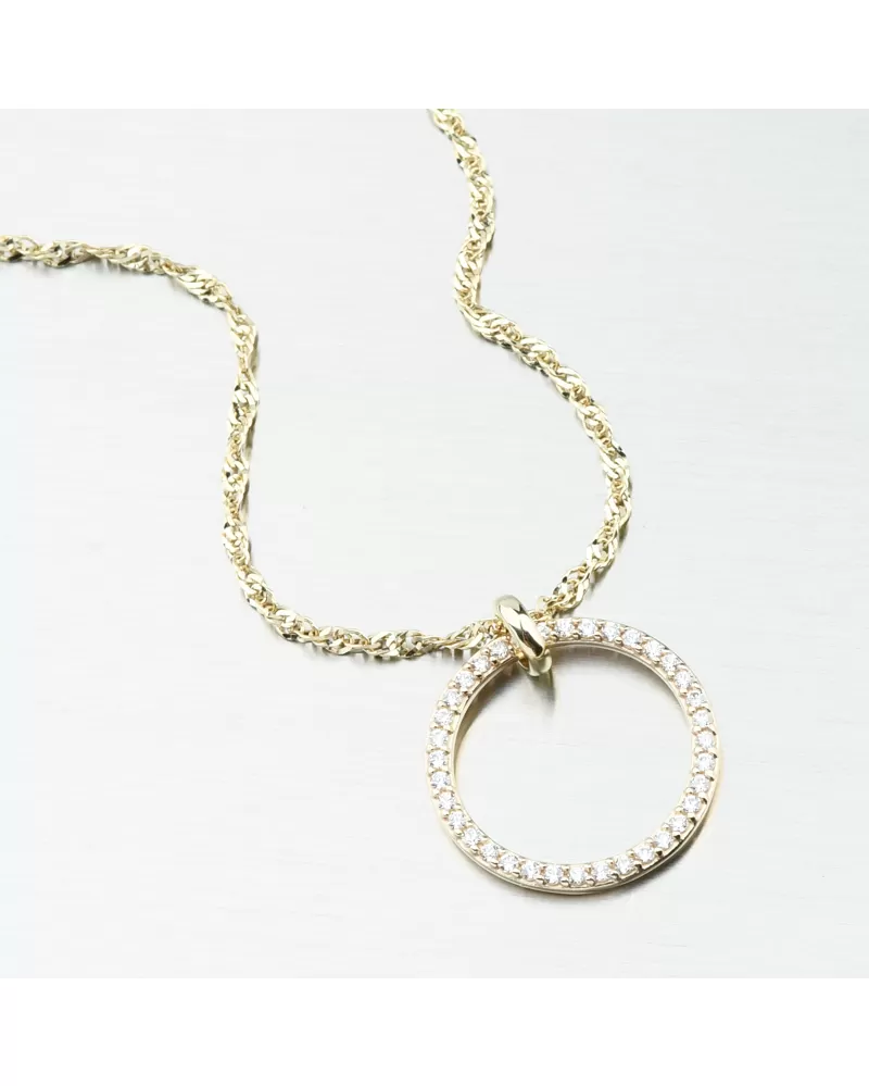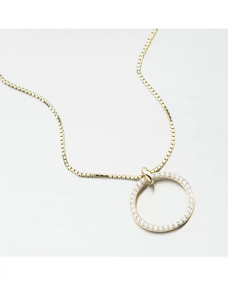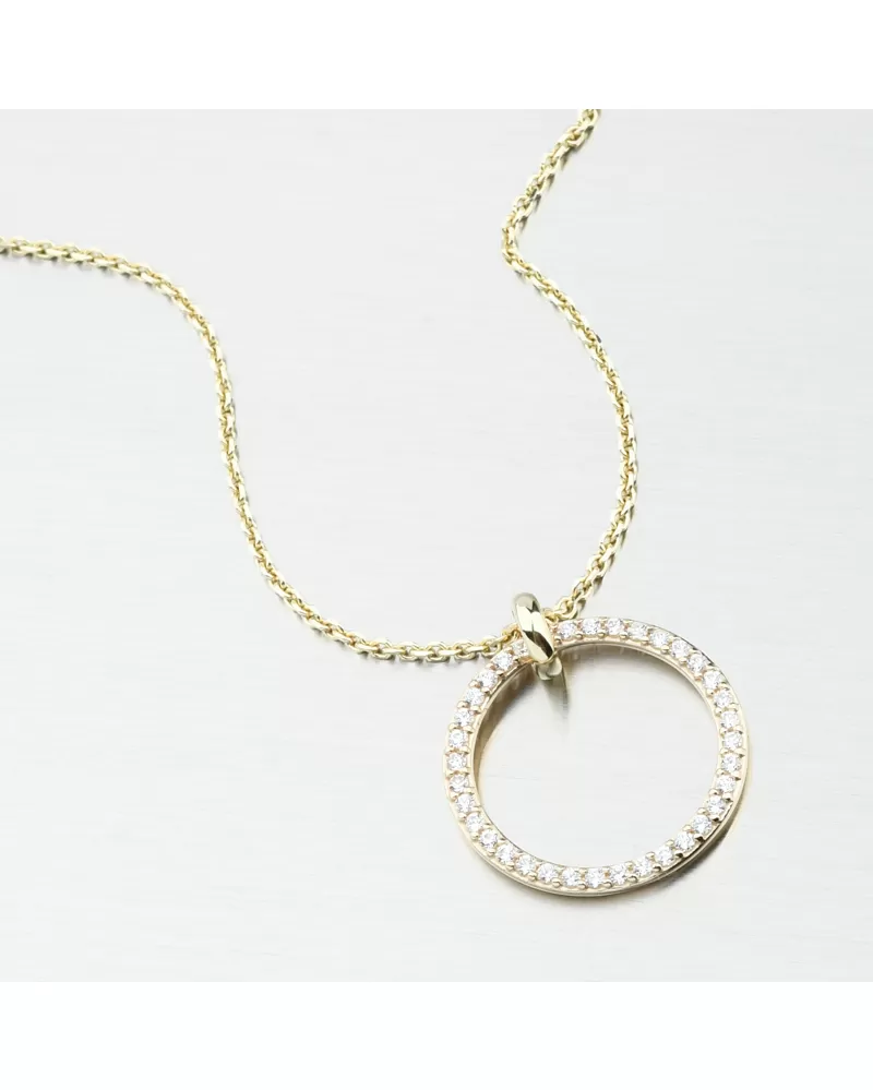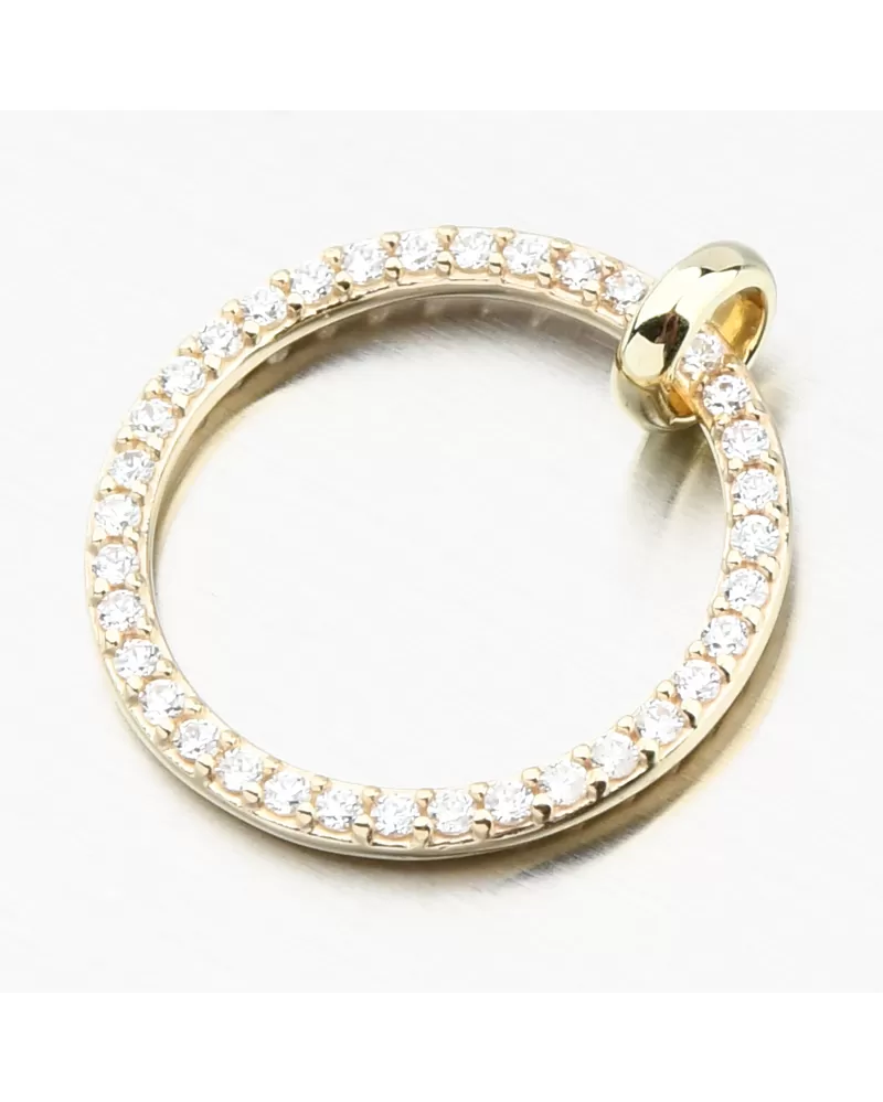 Skvělý tip na dárek, který zaručeně oslní svým elegantním designem. Přívěsek je tvořen z jednoduchého kruhu, který je osázen zirkony v briliantovém brusu. Briliantový brus dodává zirkonům třpyt pravých diamantů. Zirkony jsou fasovány jeden vedle druhého s dokonalou přesností.