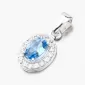 Zlatý přívěsek se syntetickým akvamarínem oválného tvaru upevněný pomocí čtyř krapen. Akvamarín je dominantou tohoto modelu náušnic a o akvamarínu se říká, že je křehký jako poklady z ledového králoství. Jsou spojovány s bohyní moře. Okolo něj jsou vsazeny čiré zirkony briliantového brusu. Tento brus propůjčuje kamenům brilanci pravých diamantů.