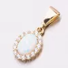 Tento nádherný přívěsek je vyrobený ze žlutého čtrnáctikarátového zlata 585/1000 v lesklé povrchové úpravě. Přívěsek je zdoben opálem vsazeným uprostřed v oválném tvaru. Opál je specifický svou barevností, která vás okouzlí a nikdy neomrzí. Kolem opálu jsou vsazeny zirkony v briliantovém brusu. Tento brus zirkonům zaručí brilanci pravých diamantů.