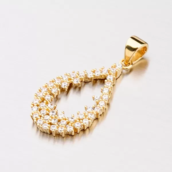 Elegantní zářivý přívěsek vyrobený ze žlutého čtrnácti karátového zlata o ryzosti 585/1000 zaujme svým osazením zářivými zirkony. Zirkony je osazena celá část přívěsku, který je vyrobený do tvaru kapky. Přívěsek zazáří na každé akci a bude slušet každé ženě. Tento šperk byl zkontrolován puncovním úřadem, který ověřil jeho kvalitu a označil státním puncem pro danou ryzost.