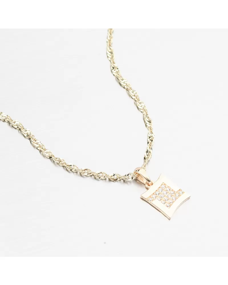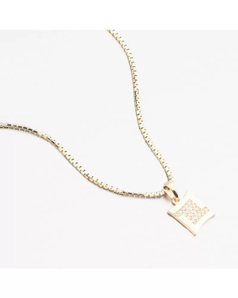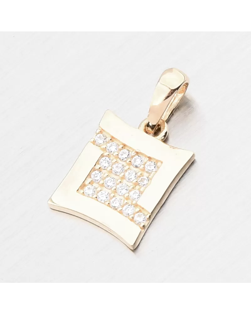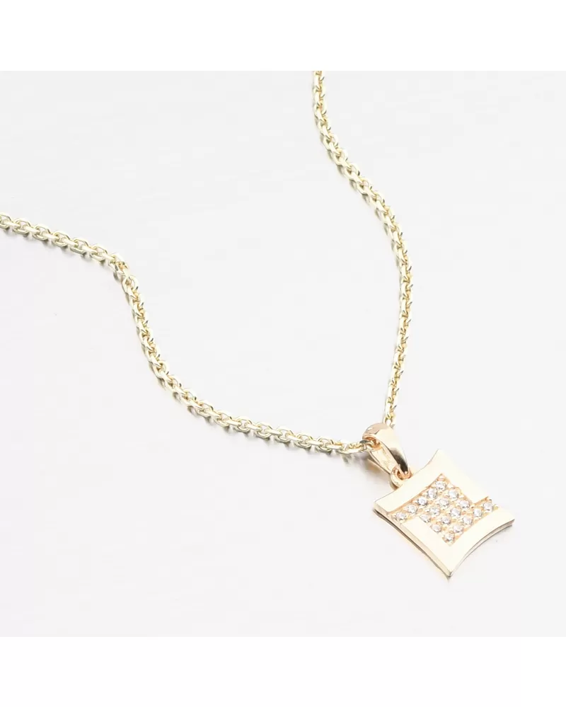 Elegantní zlatý přívěsek čtvercového tvaru, který je osazen zářivými zirkony. Zirkony jsou vybroušeny brialintovým brusem, který zajišťuje maximální brilanci vybroušených facet, dokonale odráží světlo a neuvěřitelně září z každého úhlu pohledu.