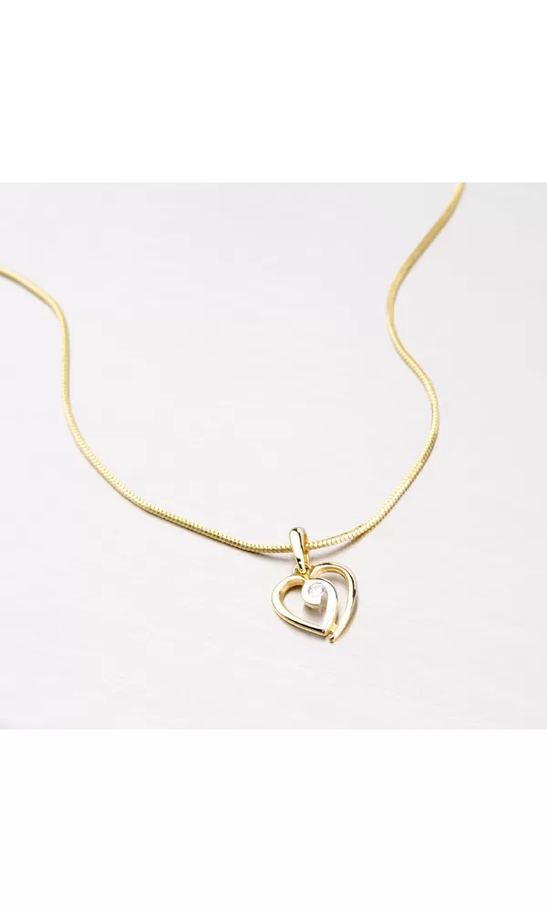 Krásný zářivý přívěsek vyrobený ze zlata o ryzosti 585/1000 v kombinaci bílé a žluté barvy. Srdíčko je uprostřed osazeno bílým zirkonem v… Celý popis