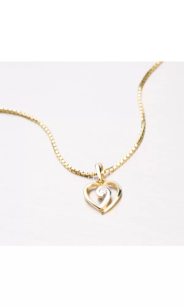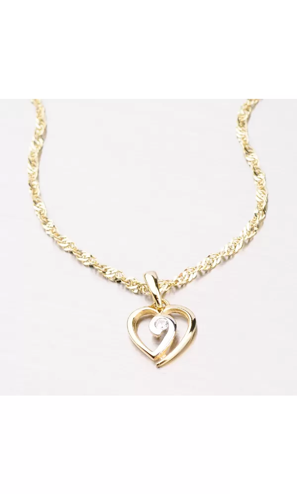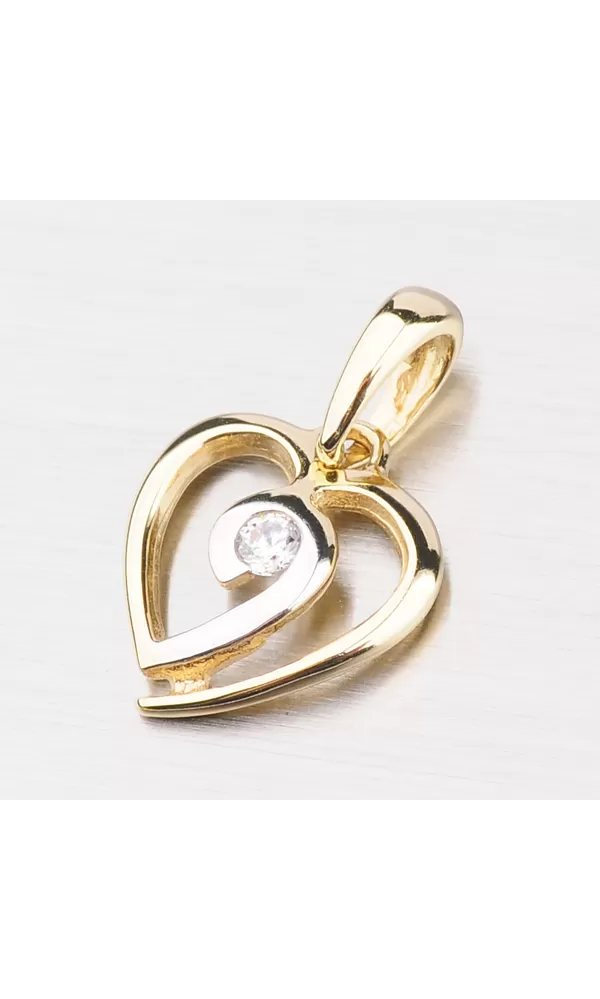 Krásný zářivý přívěsek vyrobený ze zlata o ryzosti 585/1000 v kombinaci bílé a žluté barvy. Srdíčko je uprostřed osazeno bílým zirkonem v briliantovém brusu. Přívěsek má lesklý povrch a krásně ozdobí váš dekolt.