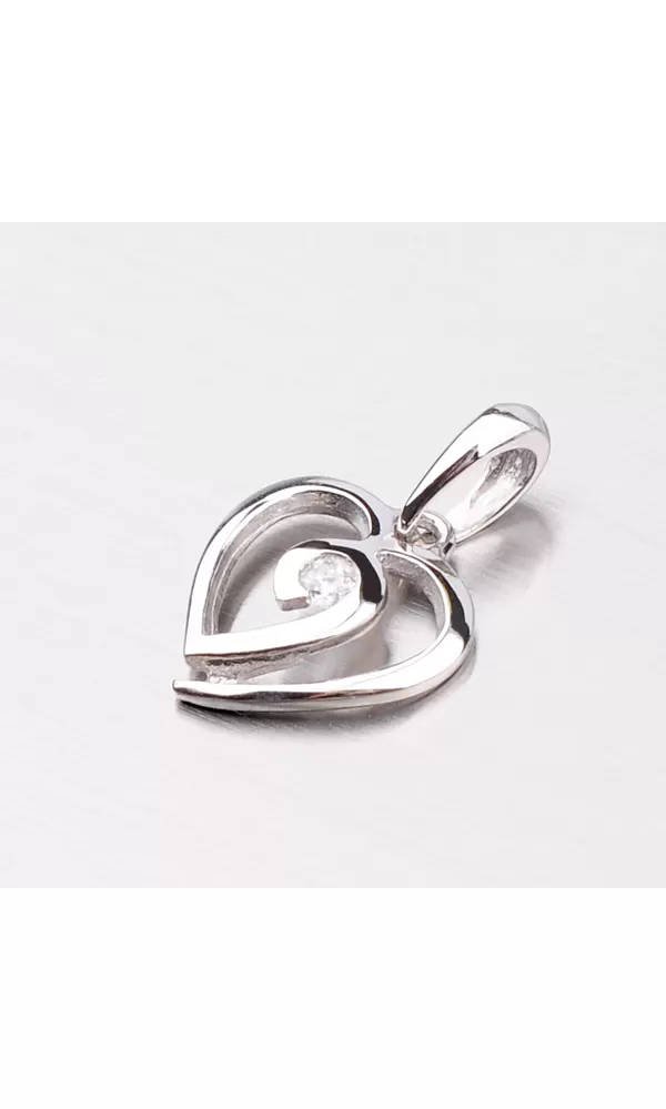 Krásný zářivý přívěsek vyrobený ze zlata o ryzosti 585/1000 v bílé barvě. Srdíčko je uprostřed osazeno bílým zirkonem v briliantovém brusu. Přívěsek má lesklý povrch a krásně ozdobí váš dekolt.