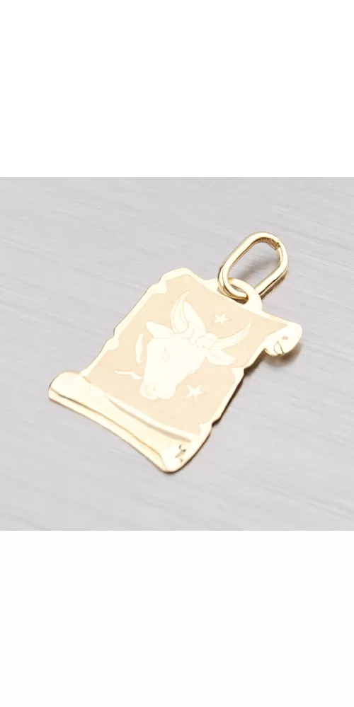 Přívěsek ve tvaru pergamenu s hvězdným znamením - Býk ze žlutého čtrnáctikarátového zlata - 585/1000 v kombinaci lesklé a matné povrchové úpravy.
