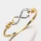 Prsten je vyroben ze žlutého čtrnáctikarátového zlata - 585/1000 v lesklé povrchové úpravě. Zlatý prsten zdobí ležatá osmička nebo-li nekonečno v bílé barvě zlata, které je zvýrazněno gravírováním. Prsten je v jemném designu a lehce ho...