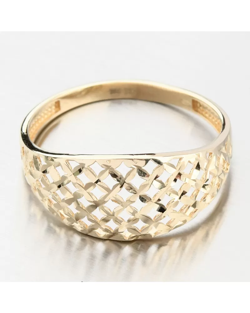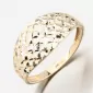 Tento zlatý prsten zaujme svým detailním prolamovaným designem, který vytváří efekt jemné krajky. Precizní rytí a hra světla na lesklém povrchu dodávají šperku jiskru i hloubku. Je to kousek, který působí žensky, elegantně a originálně zároveň. Rytí je provedeno diamantovým rycím hrotem, který zajišťuje nejvyšší možný lesk gravírovaných facet.