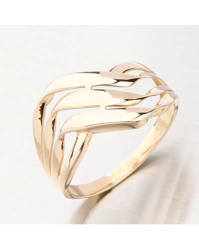 Výrazný zlatý prsten, který jen tak na ruce nepřehlédnete. Precizně zdobená přední ozdoba z propletených linií, které jsou ve vysokém lesku.