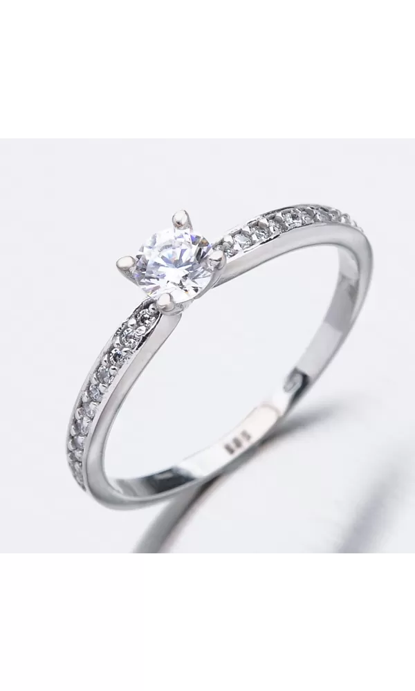 Romantický prsten po kterým každá žena touží je zdoben hlavním zirkonem v briliantovém brusu, který je uchycen čtyřmi krapnami. Zirkony jsou precizně vsazeny i v obroučce, která se díky nim dokonale rozzáří. Tento prsten může skvěle posloužit při mnoha příležitostem. Darujte ho k narozeninám nebo jako zásnubní prsten. Pokaždé budete mít úspěch. Prsten je pohodlný a dokonale padne na prst.