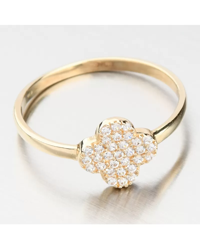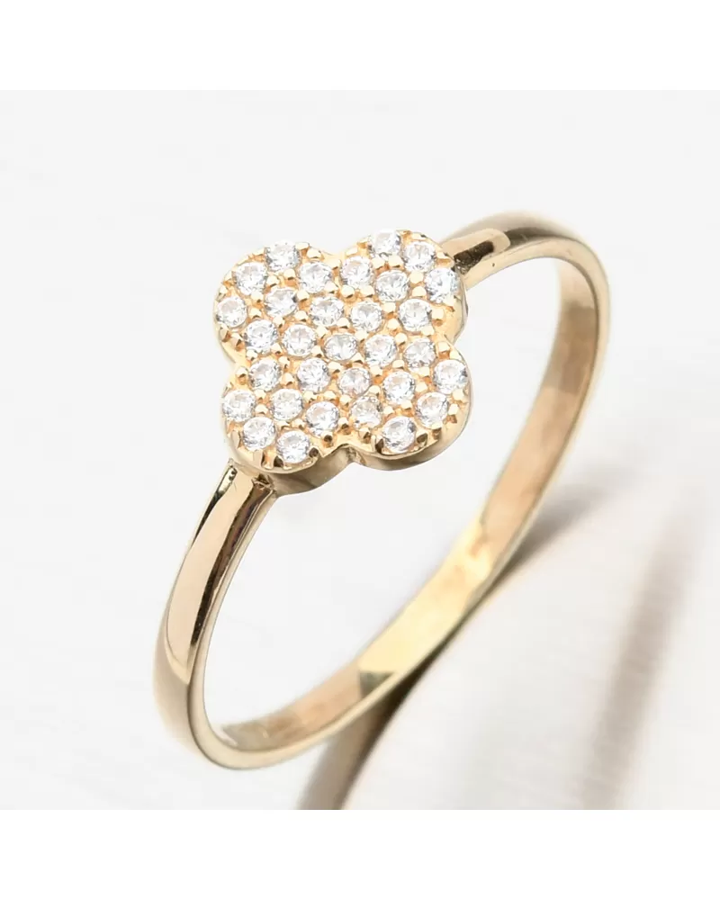 Zlatý prsten se zirkony ve tvaru čtyřlístku 11R-357