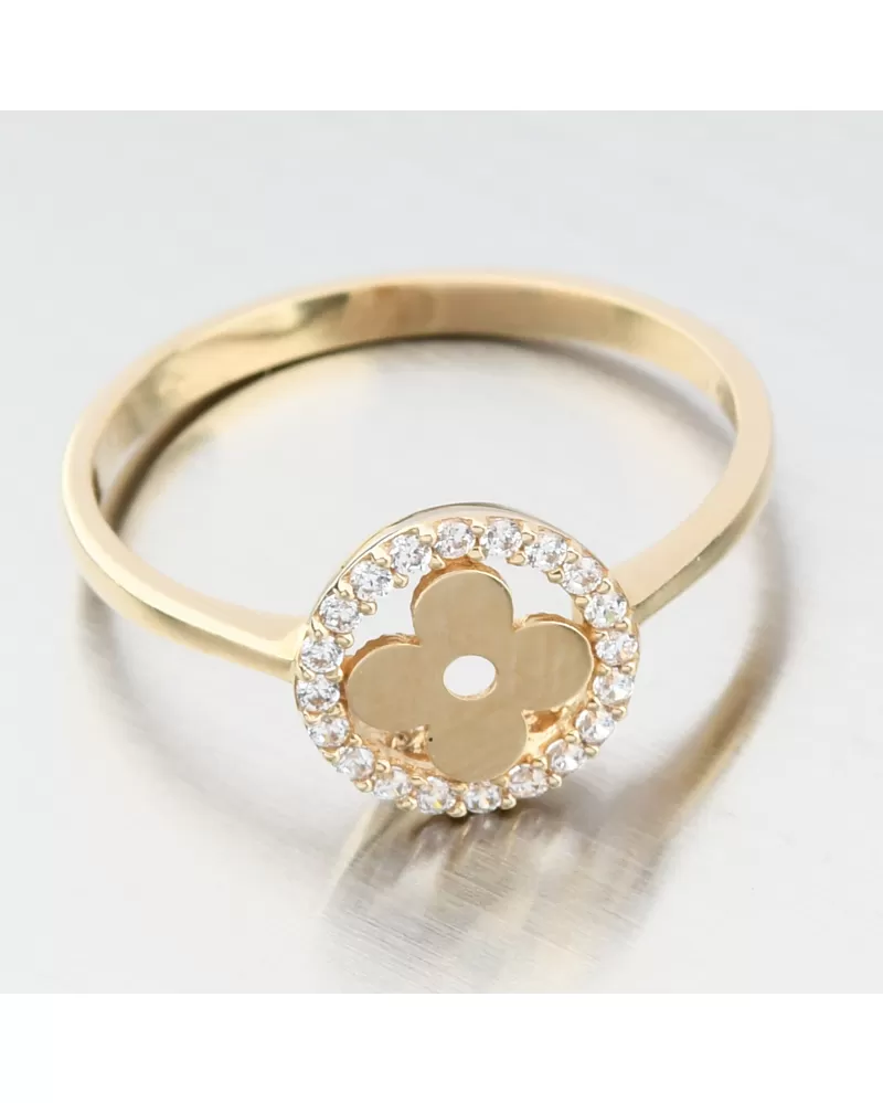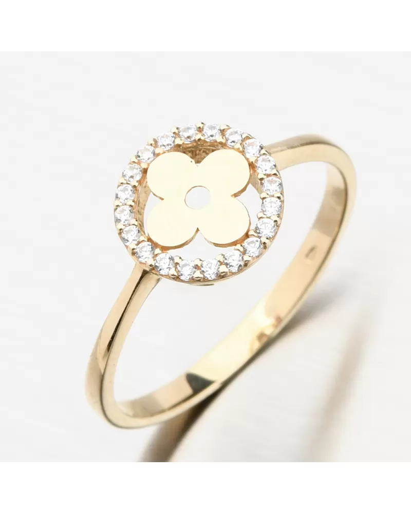 Zlatý prsten se zirkony ve tvaru čtyřlístku 11R-359