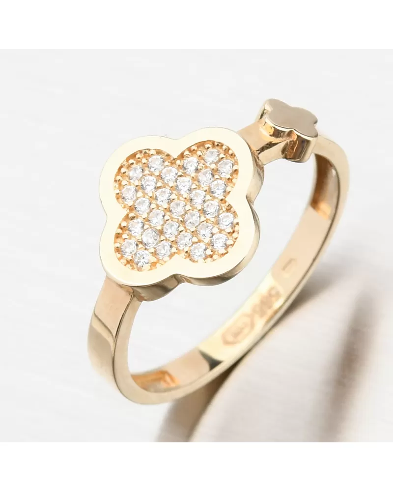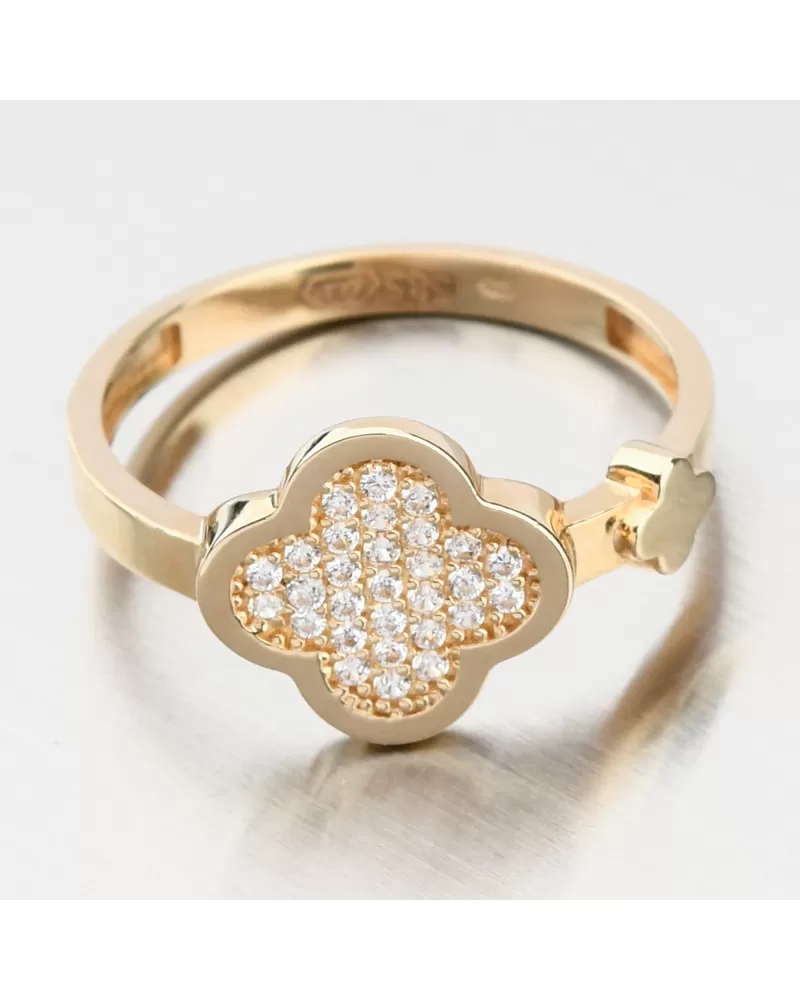 Zlatý prsten se zirkony ve tvaru čtyřlístku 11R-360