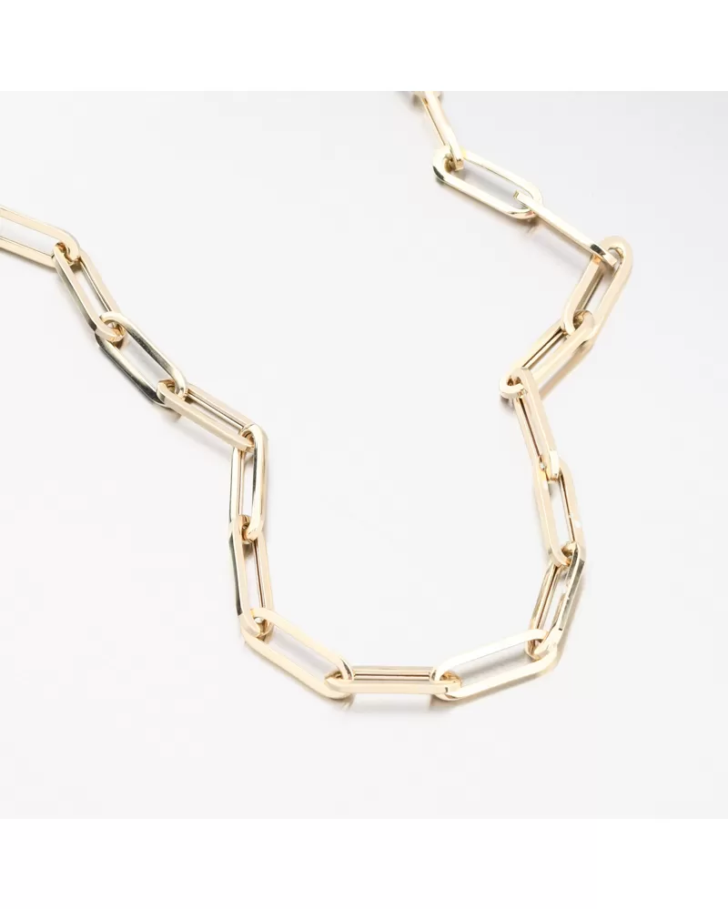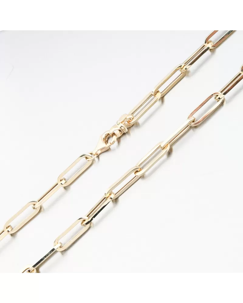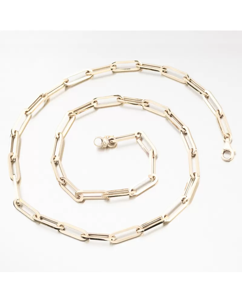 Tento řetízek ze žlutého zlata je tvořen prodlouženými dutými články, díky kterým působí masivně a luxusně, ale zároveň je překvapivě lehký a komfortní na každodenní nošení. Jemný lesk bílého zlata podtrhuje jeho moderní charakter a minimalistický styl. Jedná se o dutý řetízek, který ve většině případů doporučujeme nosit bez přívěsku, příp. pouze s lehkým přívěskem. Dutý řetízek je výhodný pro svou lehkost a vizuální větší objem za nižší cenu než masivní šperk. Duté šperky vyžadují opatrnější zacházení a obezřetnost při nošení aby nedošlo k jejich deformaci.