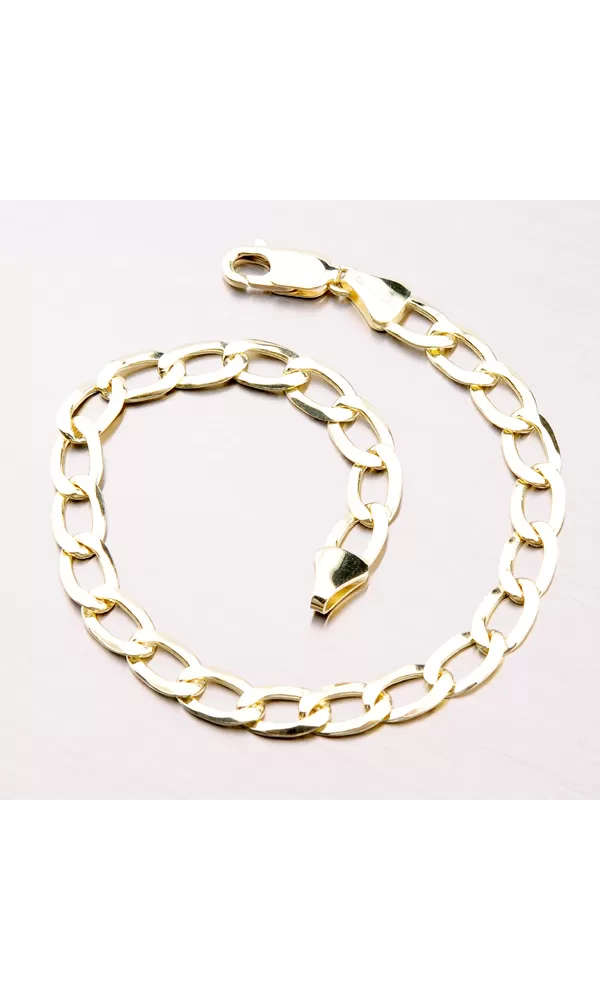 Tento velmi zajímavý náramek je vyrobený ze žlutého čtrnácti karátového zlata o ryzosti 585/1000 a zaujme svými ploškami, které jsou povrchově upraveny lesklými facetami dělanými za pomoci diamantového hrotu. Originální zpracování Vás nepřestane...