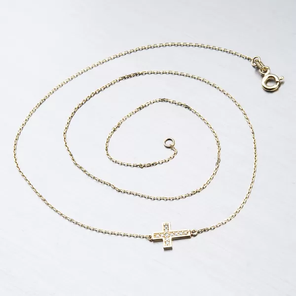 Jste milovnice křížů? Tak to vás zaujme tento zlatý řetízek, který je zdoben právě křížem. Kříž je připevněný na řetízek na pevno očky a umístěn lehce blíže ke straně. Jeho povrch je leštěn do vysokého lesku a zdobí ho zářivé zirkony v briliantovém brusu. Řetízek Anker je pevný a příjemně hladký.