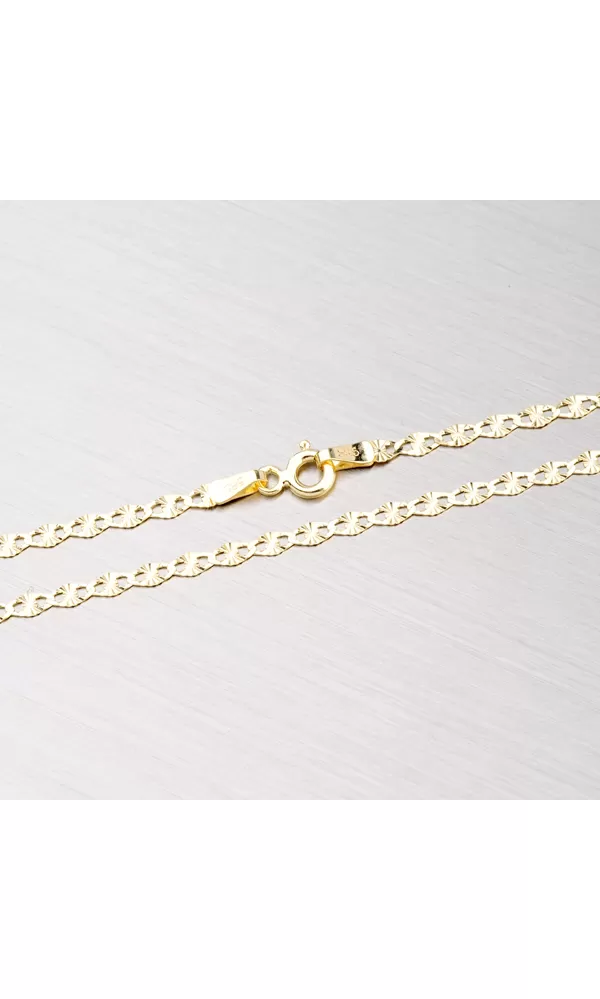 Ozdobný řetízek s gravírováním je vyrobený ze žlutého čtrnáctikarátového zlata 585/000 v lesklé povrchové úpravě. Povrch je leštěn do vysokého lesku. Navíc je řetízek zdoben gravírováním za pomocí diamantového hrotu, který dodává šperku maximální lesk Rozhodně ho nepřehlédnete.