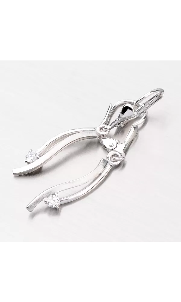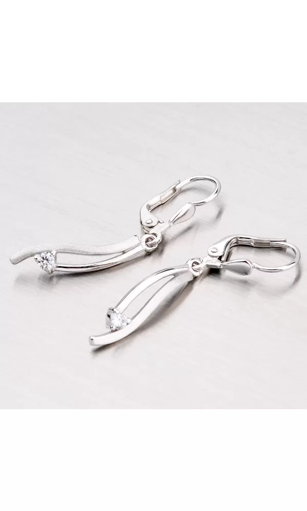 Jemné visací náušnice vyrobené z bílého čtrnáctikarátového zlata 585/1000 v kombinaci lesklé a matné povrchové úpravy. Náušnice mají klasické zapínání na klapky.